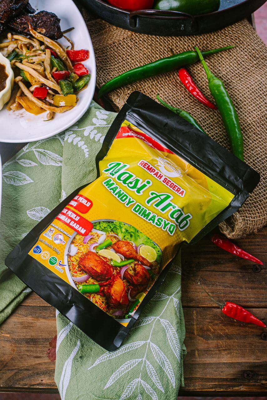 Kami mengeluarkan 3 produk sejukbeku utama iaitu Kambing perap, Ayam BBQ dan Nasi Arab Mandy. Kambing perap kami menggunakan Premium Lamb Shoulder yang tidak hamis, lembut dan juicy, diperap dengan sos blackpepper paling sedap memikat! Nasi Arab Mandy pula diinspirasikan dari Tanah Suci Muzdalifah.